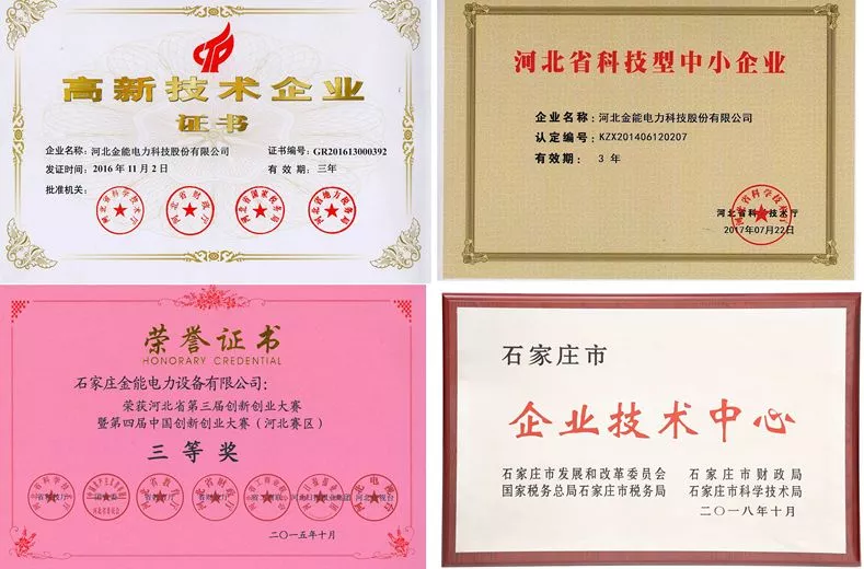 金能電力榮獲“高新技術企業”、“科技型中小企業”等多項榮譽