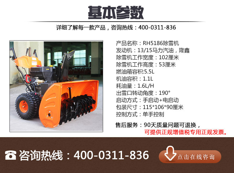 冬季揚雪機的常見規格參數